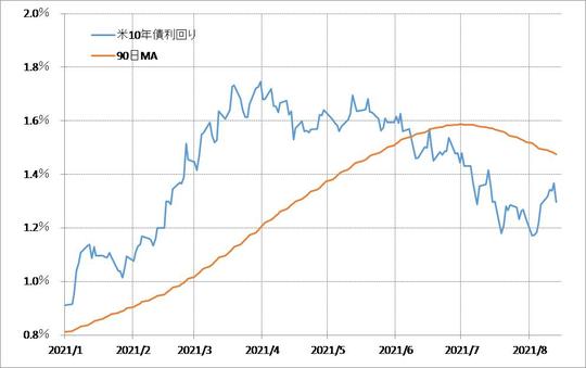 夏期休暇のピークで、市場参加者が少なく薄商いになっていたことが金利、為替相場ともに値動きを大きくした可能性は考えられますが、この間の関係を元に考えれば、米ドル/円の場合は、米金利がさらに下がるかどうかが注目されるポイントでしょう。