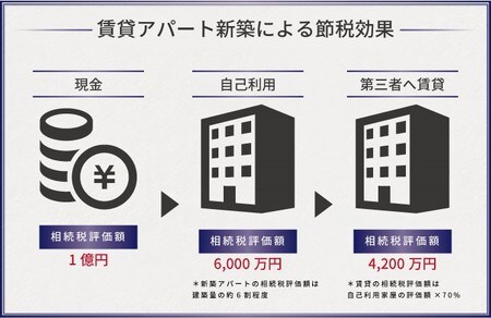 [図表6]で示すように、1億円で新築した賃貸アパートの相続税評価額は4,200万円になるというケースもあります。
