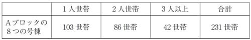 図表2と図表3から見られるように、建替えによる移転手続きによって、あるブロックの8つの号棟に住む231世帯(1人世帯が103世帯、2人世帯が86世帯、3人以上世帯が42世帯)が、それぞれの家族人数に応じて、1~7号棟の290戸へ抽選によって移転したのである。