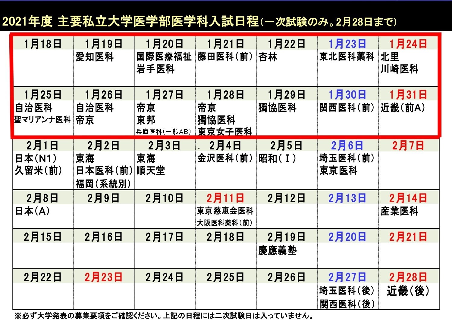 【表7】2021年度 主要私立大学医学部医学科入試日程 私立大の受験日程は毎年集中しており、入試日が重なる日が必ずある。2021年度を例にとるなら、1月19日以降の3週間で受験日が重複した日が10日あった。難易度が拮抗する大学の受験日が重なれば受験生は選択を迫られ、当然志願者は割れる。逆に単独日程だと志願者は集まる。