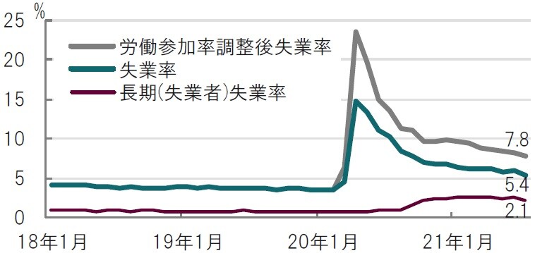 ※労働参加率調整後失業率:20年2月の労働参加率をベースにした調整と労働省によりその他に分類されたデータを調整して算出した失業率