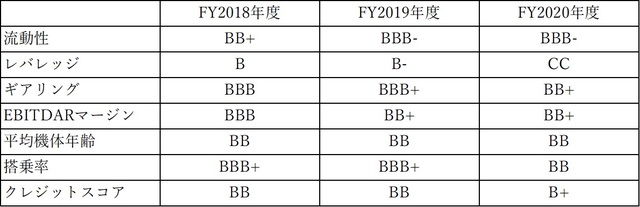 ※ データの詳細はAirline Credit Profilesを参照ください。