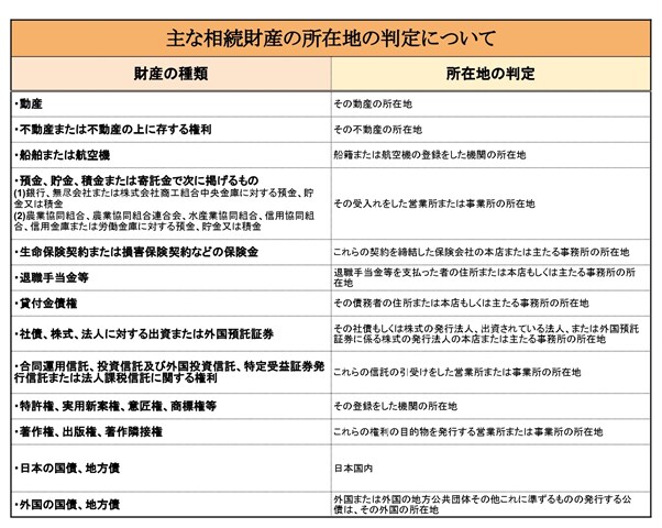 日本の国内財産と国外財産は、財産の種類ごとで判断し、所在地の判定は財産の種類によって異なります。