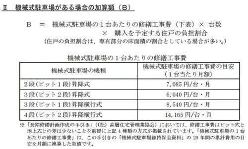 そのマンションに維持・管理にお金がかかる機械式駐車場があるとさらに(B)が加算されるということです。