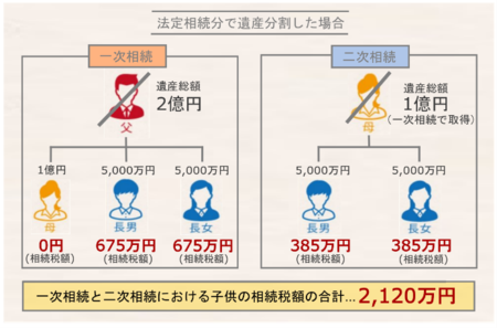 一次相続における遺産分割方法は、一次相続の子供の相続税額だけではなく、一次相続と二次相続で子供が負担する相続税の総額をシミュレーションすることが大切です。