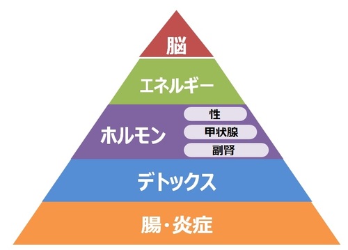 「栄養が足りなくなる理由を考え、そこに手を打つことが大事です。私は今までの診療経験から、治療内容と順序を大きく5つに分け、原則的に下の段から行っていきます【図表】。これらのどれも重要なのです」
