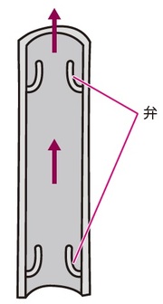 勢いがなくなりすぎて逆流しないように、静脈には図表2のような弁というつくりが備わっています。