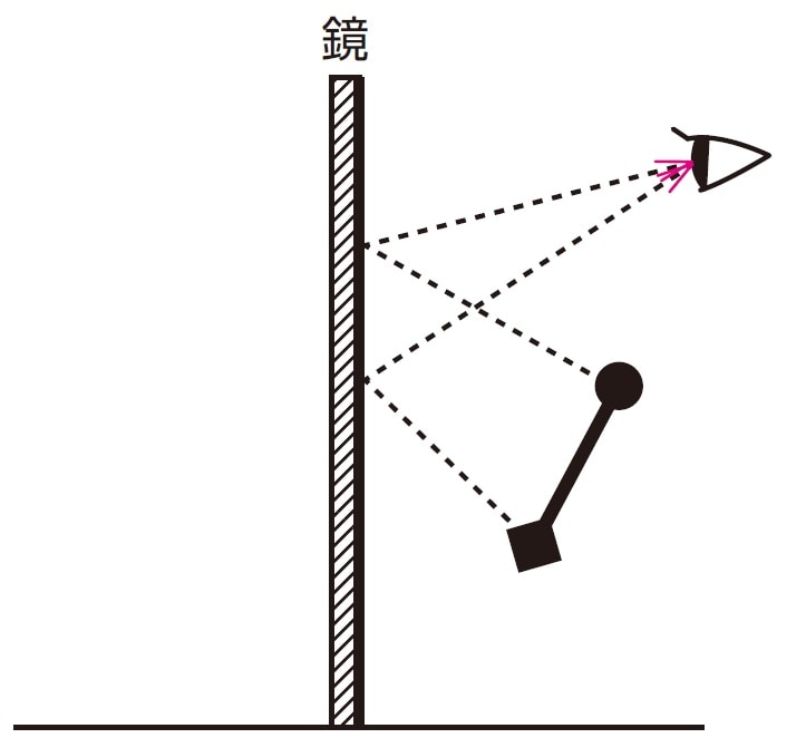 鏡の向こう側に偽物があるように見えるのは、その方向から目に光が入ってきているからです。