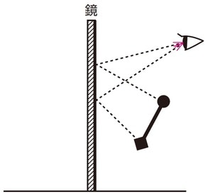 さっそく説明していきたいところですが、その前に洗面所の鏡の前に立ってください。鏡の向こうには、自分とそっくりな人が立っているはず。この人を偽物と呼びましょう。そして、自分から鏡までの距離と、鏡から偽物までの距離を確認してください。同じですね。