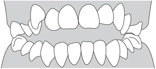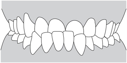本来は隣り合って並ぶはずの歯が、互いに重なり合ったり傾いたりする、乱れた状態の歯並びのことを指します。別名「乱ぐい歯」ともいい、日本人の不正咬合のなかでは最も多い症状です。「八重歯」もこの状態にあたります。