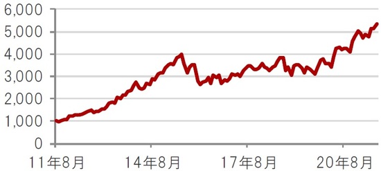 ※一株あたり売上高は、指数の値とPSR(株価売上高倍率)から算出