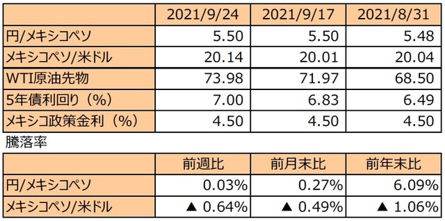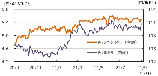 (注2)円/メキシコペソと円/米ドルの単位は円、メキシコペソ/米ドルの単位はメキシコペソ。