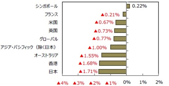 グローバル・リートは、長期金利が上昇したことなどを受けて、週間で0.77%下落しました。