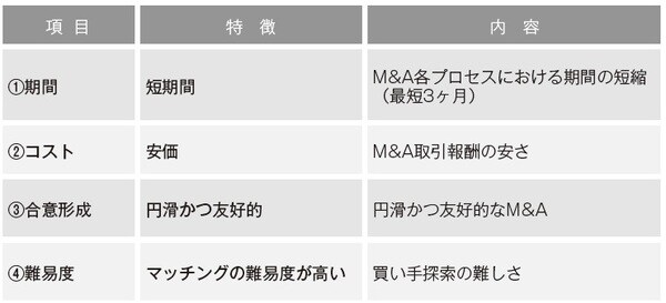 スモールM&A取引において、その概要および特徴は以下の4点です。なお、詳細は後述します(図表2参照)。