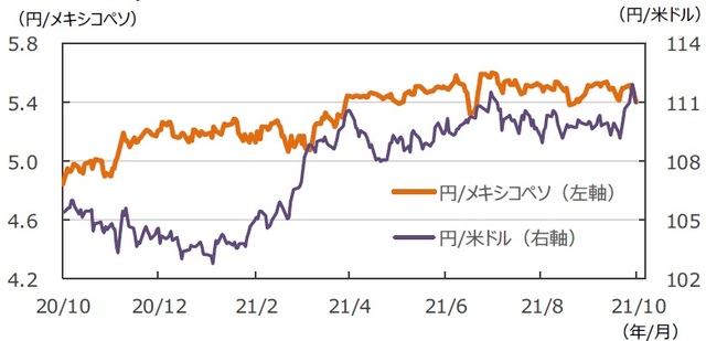 (注2)円/メキシコペソと円/米ドルの単位は円、メキシコペソ/米ドルの単位はメキシコペソ。