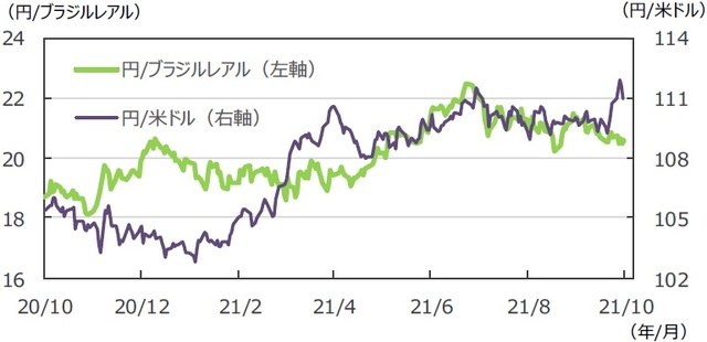 (注2)円/ブラジルレアルと円/米ドルの単位は円、ブラジルレアル/米ドルの単位はブラジルレアル。