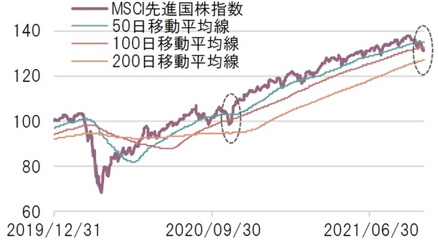 約11ヵ月ぶりに100日移動平均線を割った先進国株指数