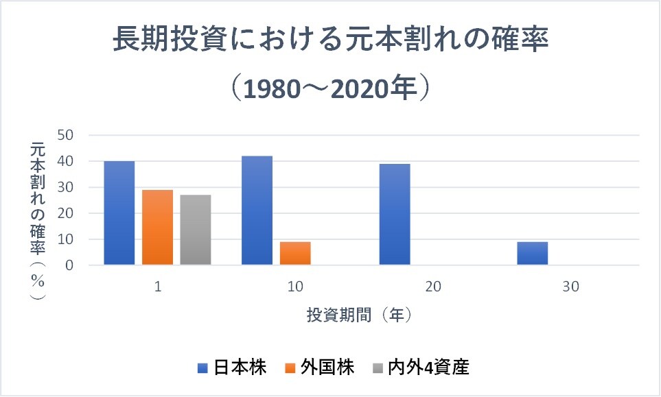なお、子どもが心配されるのであれば、内外の債券投資も組み合わせて4資産分散投資にすれば10年で元本割れはないという試算もあります。