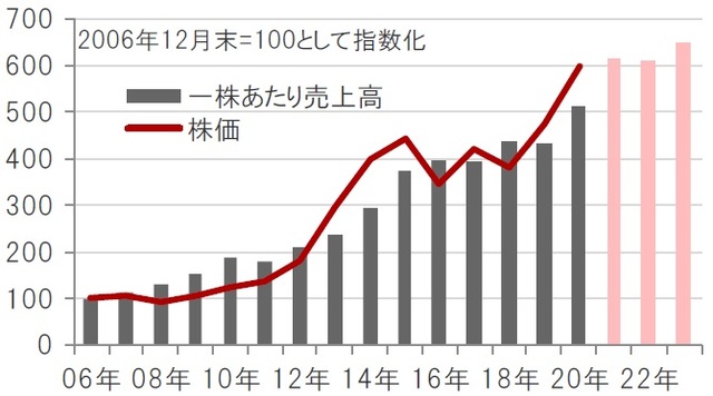 ※2021年~2023年の一株あたり売上高は、ブルームバーグ集計アナリスト予想平均