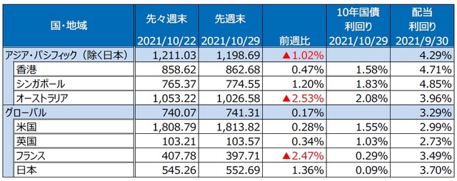 2. 先週のアジア・オセアニア株式・リート市場