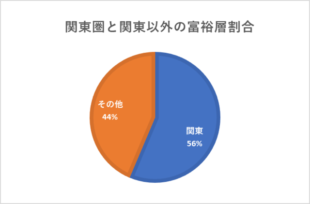 上記の割合をみると、関東以外に住む富裕層の割合は4割を超えており、富裕層は全国にいることがわかります。