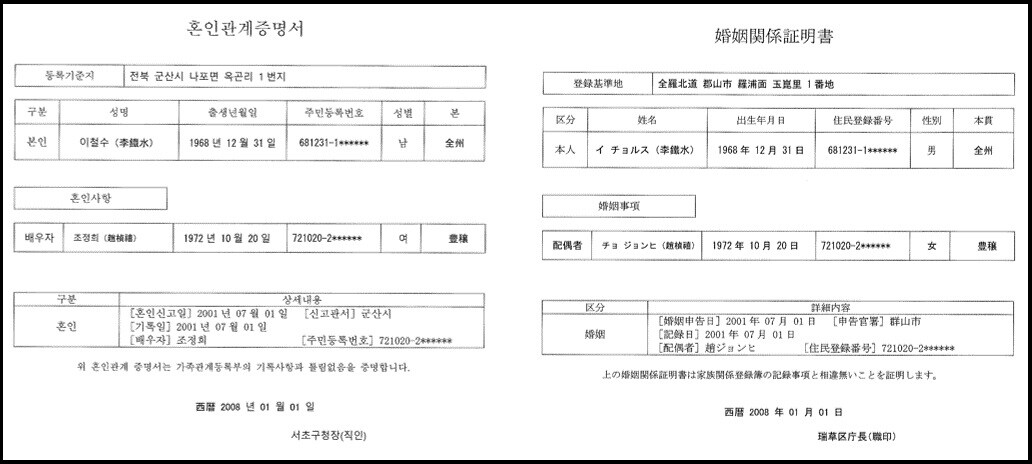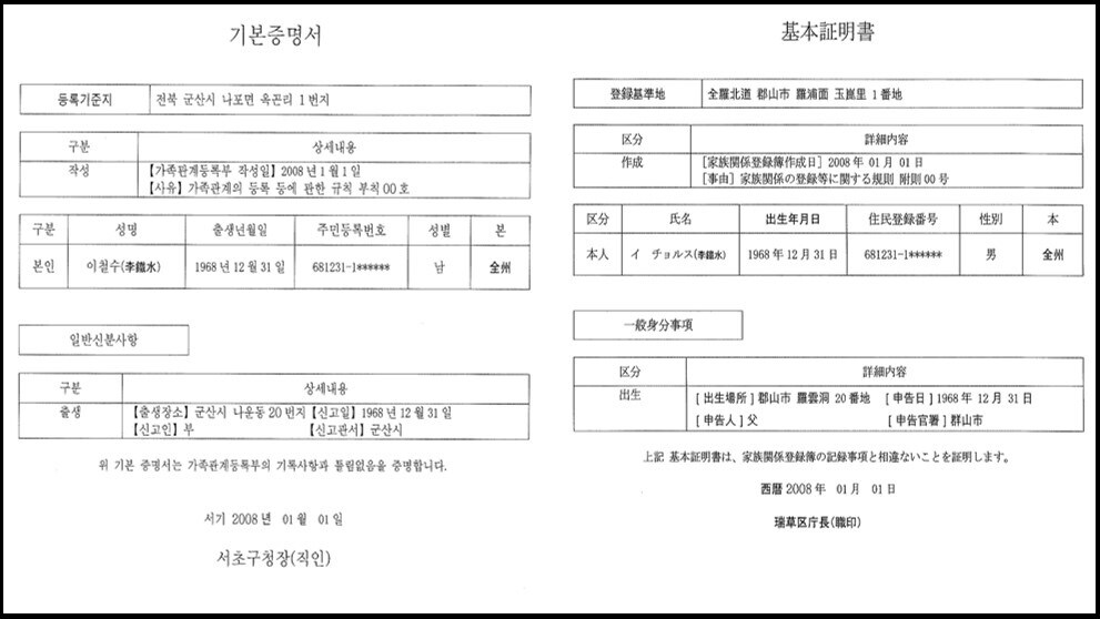 ※戸籍謄本及び証明書の出典:大韓民国裁判所HP、翻訳:日本経営ウィル税理士法人
