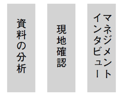 三つ目は、「マネジメントインタビュー」です。マネジメントインタビューは、資料の内容や現地の様子を補う形で、マネジメント層(経営者やそれに準じる者又は事務方)等から口頭で聞き取りをするというものです。