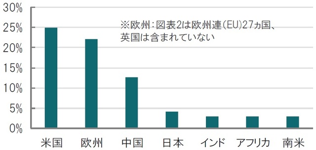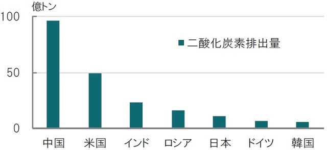 この背景を考えるうえで、二酸化炭素の排出量だけを上位国についてみると中国やインドに改善が求められそうです(図表2参照)。環境問題に熱心な欧州からは経済規模が大きいドイツが上位にランクインするのみです。