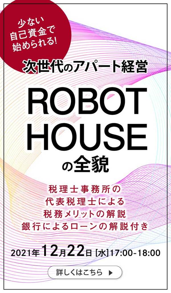 少ない自己資金で始められる!圧倒的物件力の「ROBOT HOUSE」…詳細はこちら >>>