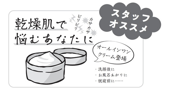 そこには、「店長おすすめ」「スタッフオススメ」と書いたPOPがあります。あるいは、「肌の悩みありませんか?」「乾燥肌で悩むあなたに」といった問い掛け、呼び掛けのコピーも並んでいます[図1]。