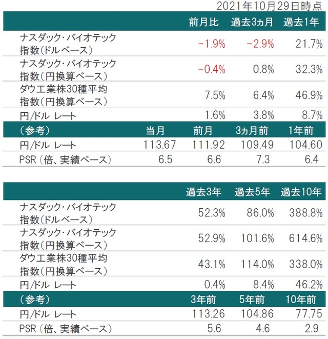 10月のナスダック・バイオテック指数(ドルベース、配当含まず)は下落しました。