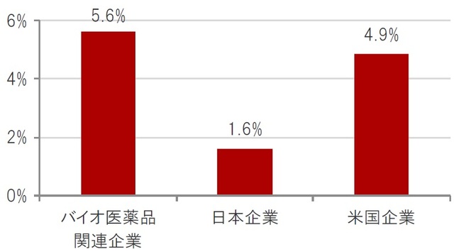 ※バイオ医薬品関連企業:ナスダック・バイオテック指数、日本企業:TOPIXの構成銘柄、米国企業:S&P500種株価指数