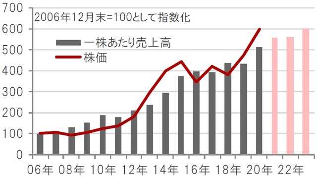 ※2021年~2023年の一株あたり売上高は、ブルームバーグ集計アナリスト予想平均