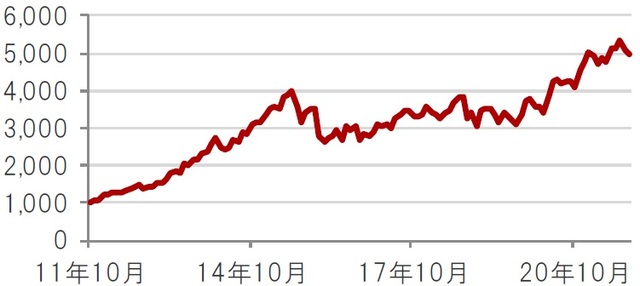 ※一株あたり売上高は、指数の値とPSR(株価売上高倍率)から算出