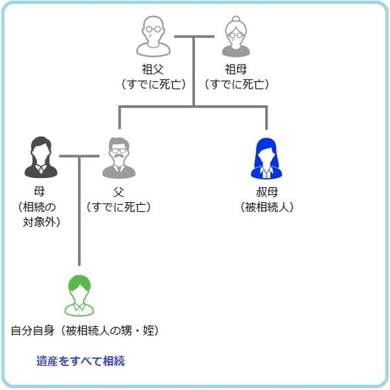 叔父・叔母が死亡して相続人が自分1人だけの場合は、遺産をすべて相続することができます(図表2)。