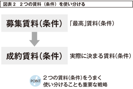 前項で述べた募集条件が、「最高」の条件になるということはおわかりいただけたと思います。より具体的に言えば、賃料(だけではなく、敷金礼金等も含めてですが)には、募集賃料と成約賃料の2種類があるということです(図表2)。