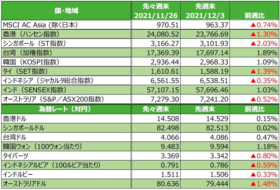 (注5)前週比は2021年11月26日から2021年12月3日まで、前月末比は2021年11月30日から2021年12月3日まで、前年末比は2020年末から2021年12月3日まで。