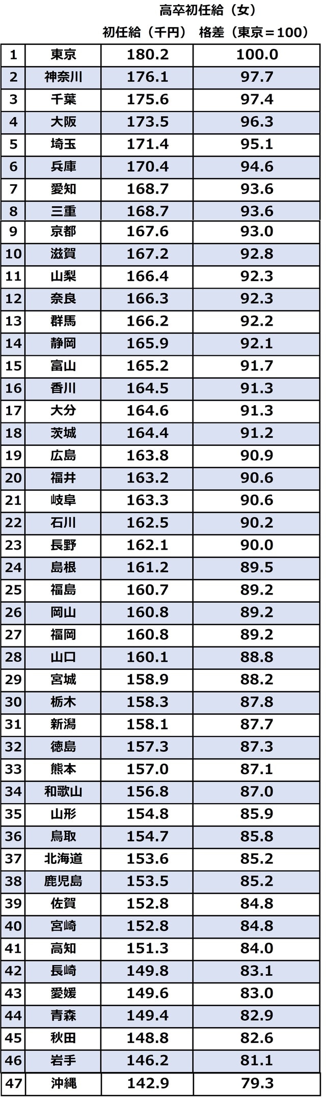 出典:厚生労働省『令和元年賃金構造基本統計調査結果(初任給)の概況』