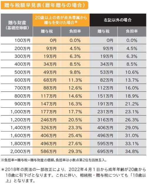暦年贈与に係る贈与税の税額速算表は[図表1]の通りです。