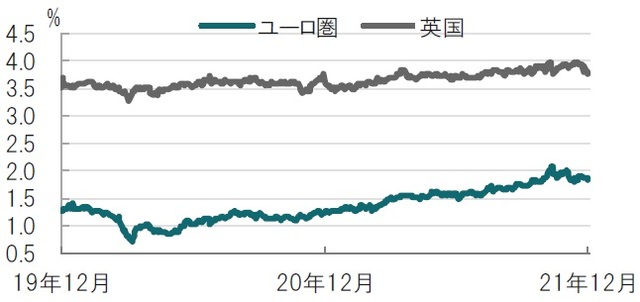 英国中銀とECBの金融政策決定会合が重なるのはおよそ3年以上前ですが、両中銀の発表内容から判断して、政策の方向性は共にタカ派(金融引締めを選好)的となり、市場予想にやや反する結果となりました。もっともインフレ懸念が強い英国は利上げを決定した一方、ECBは今後の資産購入縮小(テーパリング)方針を明確化しただけとタカ派の程度に違いは見られます。