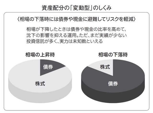 変動型:相場の局面に応じ、資産配分をフレキシブルに調整・変更