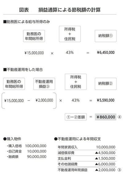 皆さんのような高額納税者にとって不動産運用は非常に相性がいい。なぜなら不動産から得た収入は、勤務医としての給与所得と合算する「損益通算」してから確定申告できるからです。