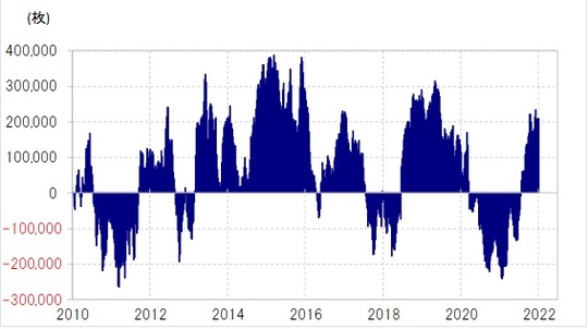 米ドルのポジションを見ると、こちらは買い越しが20万枚程度といった大幅な状況に大きな変化はなさそうです(図表6参照)。以上のように見ると、米金利の上昇に連れる形での米ドル買いの急拡大は、昨年末にかけて一部ではポジション整理があったものの、全体的にはまだ大きな変化はないのではないでしょうか。