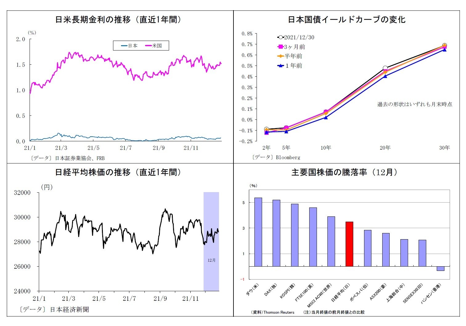 月初、オミクロン株の感染拡大への警戒からリスクオフ地合いとなり金利は低下、6日には0.0%台前半に接近。しかし、翌7日には、「同株の重症化率は高くない」との見方が台頭して金利は持ち直した。