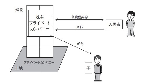 この場合、土地建物を被相続人(親)から取得したり、あるいは親が出資して新たに土地建物を購入するケースなどが考えられます。ただし、親の土地をプライベートカンパニーで取得すると、親に譲渡税が発生するので注意が必要です。