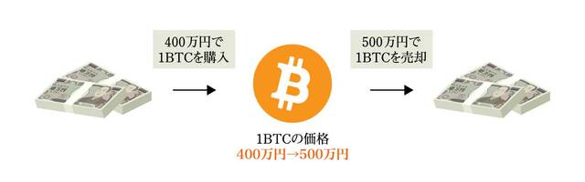 [例1]400万円で購入した1ビットコイン(BTC)を500万円で売却