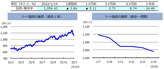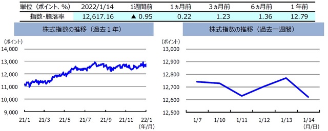 (注)左グラフは2021年1月14日~2022年1月14日、右グラフは2022年1月7日~2022年1月14日。