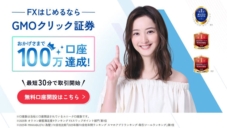 ・100万口座突破の人気FX会社(※口座数はGMOクリック証券に口座開設されているユニーク口座数です。)