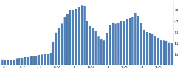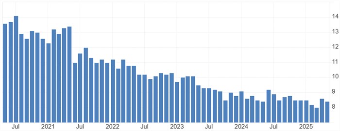 2025年6月は35.05%のインフレ率だったので、政策金利の43.0%を引いた実質金利は7.95%です。