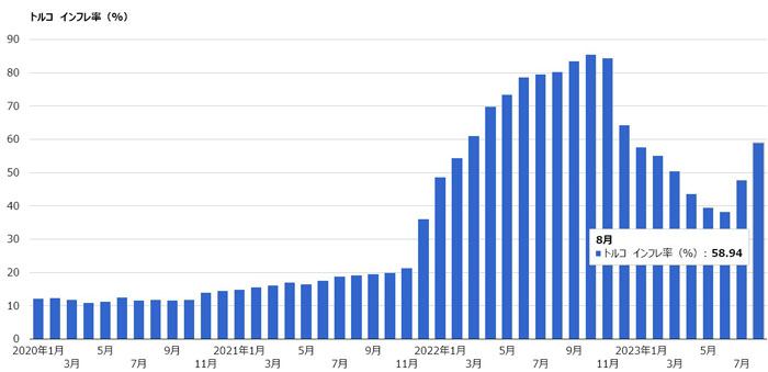 2023年の大統領選後に方針転換されてから金利は急ピッチで引き上げられ、現在の政策金利は